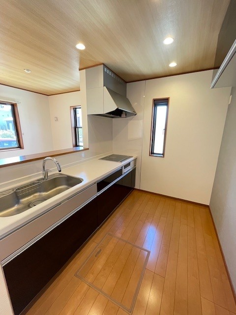 家族との会話が自然に生まれる対面式キッチン。